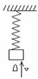 ⒏ 一轻质弹簧,上端悬挂于天花板,下端系一质量为M的木块,处于平衡状态,一质量为m的子弹以初速度v0向上射入木块并留在其中,如图所示。
