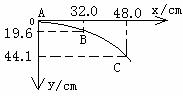 ⒔(6分)右图是《研究平抛物体的运动》实验得到的运动轨道,根据图中数据,平抛运动的初速度为 m/s。
