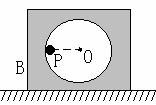 ⒘(14分)横截面为正方形的物体B,质量为M,置于水平地面上,其中央部分是一个空的圆形,圆形轨道是光滑的,如图所示。现有一个质量为m的小球A恰好能在轨道内侧作圆周运动,而物体B则始终保持静止。当小球A经过与圆心处于同一水平线上的P点时,地面对物体B的支持力N和摩擦力f各是多大?