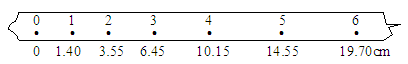 ,如下图为一次实验得到的一条纸带,纸带上每相邻的两计数点间都有四个点未画出,按时间顺序取0、1、2、3、4、5六个计数点,用米尺量出1、2、3、4、5点到0的距离如下图所示(单位: