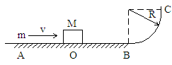 圆弧轨道,两轨道恰好相切,质量为M的小木块静止在O点,一质量为m(m=M/9)的子弹以某一初速度水平向右射入小木块内不穿出,木块恰好滑到圆弧的最高点C处(子弹、小木块均可看成质点)。问: