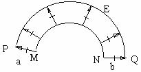 6. PQ和MN 两块圆弧形金属板之间存在着辐向均匀分布的电场,电力线方向如图所示。