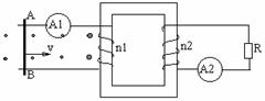 7. 图中理想变压器原、副线圈匝数之比n1∶n2=4∶1,原线圈两端连接光滑导轨,原、副线圈与电阻R相连组成闭合回路。当直导线AB在匀强磁场中沿导轨匀速地向右作切割磁力线运动时,安培表A1的读数是12毫安,那么安培表A2的读数为( )