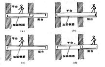 混凝土便宜而坚固耐压,但不耐拉,钢耐压也耐拉,通常在混凝土建筑物需承受张力的部位用钢筋来加固。如上右图中,楼板和阳台的加固钢筋位置都正确的是