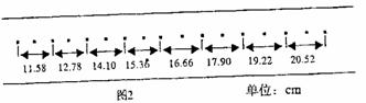(2) 已知打点计时器使用的交流电频率为50Hz,利用图2给出的数据可求出小车下滑的加速度大小a=___________________________。(结果取2位有效数字)(2分)