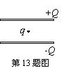 13.如图所示,平行板电容器极板间距离为d,电容为C,所带电荷量为Q,在两个极板正中央有一个点电荷,带电量为q,则该点电荷所受的电场力大小为 ( )
