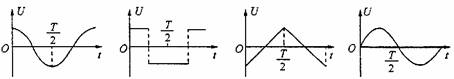 3.在平行金属板间加上如图所示电压,使处于板中央原来静止的电子能做往复运动的电压是 ( )