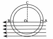 如图所示,半径为R的环状非金属管竖直放置,AB为该环的水平直径,且管的内径远小于环的半径,环的AB以下处于水平向右的匀强电场中。现将一质量为m,带电量为q的小球从管中A点由静止释放,小球恰好能通过最高点C,求: