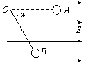 一质量为m,带电量为+q的小球,用长为L的绝缘线悬挂在水平向右的匀强电场中,开始时把悬线拉到水平,小球在位置A点。然后将小球由静止释放,球沿弧线下摆到α = 60°的B点(如图3所示),此时小球速度恰好为零,则匀强电场场强大小为( )