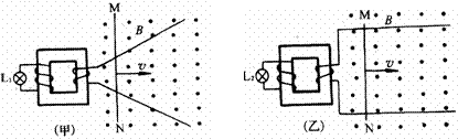 13. 如图所示,甲中两条轨道不平行而乙中的两条轨道是平行的,其余物理条件都相同,金属棒MN都正在轨道上向右匀速平动,在棒运动的过程中,将观察到: