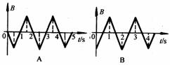 18. 一闭合线圈固定在垂直于纸面的匀强磁场中,设向里为磁感强度B的正方向,线圈中的箭头为电流i的正方向(如图所示).已知线圈中感生电流i随时间而变化的图像如图所示,则磁感强度B随时间而变化的图像可能是: