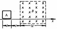 图中A是一边长为l的方形线框,电阻为R.今维持线框以恒定的速度v沿x轴运动,并穿过图中所示的匀强磁场B区域.若以x轴正方向作为力的正方向,线框在图示位置的时刻作为时间的零点,则磁场对线框的作用力F随时间t的变化图线为: