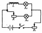 22. 如图所示为演示自感现象的实验电路图,L是电感线圈,A1、A2是规格相同的灯泡,R的阻值与L的电阻值相同,当开关K由断开到合上时,观察到的自感现象是 ,最后达到同样亮.