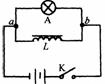 如图所示,为一演示实验电路图,图中L是一带铁心的线圈,A是一灯泡,电键K处于闭合状态,电路是接通的。线将电键K打开,则在电路切断的瞬间,通过灯泡A的电流方向是从 端到 端,这个实验是用来演示