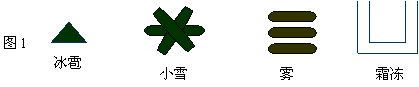 图1的符号分别表示冰雹、小雪、雾和霜冻四种天气现象,其中主要通过液化形成的是( )