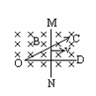 图中,“∠” 形金属导轨COD上放有一根金属棒MN,拉动MN使它以速度v 向右匀速平动,如果导轨和金属棒都是粗细相同的均匀导体,电阻率都为ρ,那么MN在导轨上运动的过程中,闭合回路的 [