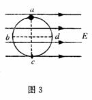 一半径为R的绝缘光滑圆环竖直放置在水平向右,场强为E的匀强电场中,如图3所示,环上a、c是竖直直径的两端,b、d是水平直径的两端,质量为m的带电小球套在圆环上, 并可沿环无摩擦滑动,已知小球自a点由静止释放,沿abc运动到d点时的速度恰好为零,由此可知