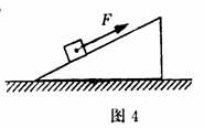 如图4所示,放置在斜劈上的物块受到平行于斜面向上的力F的作用,整个装置保持静止,现在使力F增大,仍保持整个装置静止。则下列说法正确的是