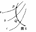 如图6所示,虚线a、b、c表示三个等势面,相邻等势面间的电势差相等,即Uab=Ubc,实线为一带正电的质点仅在电场力作用下通过该区域的运动轨迹,P、Q是轨迹上的两点,则