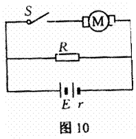 14.(3分)如图10所示的电路中,小电动机M和电阻R并联接在电源上,电动机的内电阻