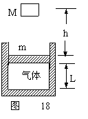 如图18所示,在水平面上固定一个传热性能良好的气缸,缸内由质量为m的活塞封闭一定质量的理想气体,活塞与缸壁间无摩擦且不漏气。活塞到缸底距离为L。今有一质量为M的重物自活塞上方h高处自由下落与活塞发生碰撞,且碰撞时间极短。碰撞后重物与活塞一起向下运动,向下运动至达到最大速度V。求从活塞向下运动至达到最大速度的过程中,活塞对气体所做的功。(设气体温度不变,外界大气压强为P0)