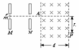 磁场边界射入宽度为d的匀强磁场中,电子离开磁场时的位置P偏离入射方向的距离为L,如图