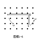 7.如图模1-6所示,折成直角的金属棒在匀强磁场中绕O转动,则a,b两点电势Ua和Ub相比应是 [ ]