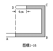 19.一个粗细均匀的U形管,一端开口,一端用水银封闭一定质量的气体.当U形管平面在竖直平面上时,如图模1-16所示,CD在上,AB在下,D端封闭4cm长的空气柱,开口部分的水银面与封闭端在同一竖直面上,BC长38cm.若将U形管立起来,即BC段水平,AB和CD竖直放置而且开口向上,且变化过程中气体温度不变.立起来以后,两管水银面的高度差多大?(已知大气压强为1个标准大气压.)(14分)
