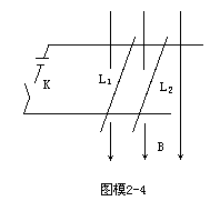 5.水平平衡放置的光滑金属导轨上放两根导体L1和L2,它们相互平行且垂直于导轨,质量与电阻均相等,整个装置放在竖直向下的匀强磁场中,如图模2-4所示.当按下电键时,若导体L1和L2分别获得加速度a1和a2,则 [ ]