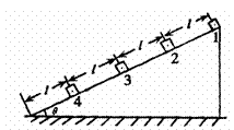 沿斜面下滑,其余所有木块都静止。由于第一个木块的下滑将依次引起一系列的碰撞,每次发生碰撞时间都很短,在发生碰撞后,发生碰撞的木块都粘在一起运动,直到最后第4个木块到达斜面底端时,刚好停在底端。求: