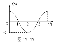 一矩形线圈,绕垂直于匀强磁场并位于线圈平面内的固定轴以恒定的角速度转动,线圈中感应电流i随时间t变化情况如图12--27所示,则