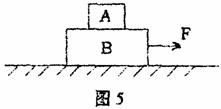 9.光滑水平面上叠放着两个物体A和B,如图5所示,水平拉力F作用在物体B上,使它们从静止开始一起运动。经过时间t,撤去拉力F,再经过时间t,物体A、B的动能分别为EA和EB。在运动过程中A、B始终保持相对静止,以下几种说法:
