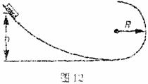 19.(11分)如图12所示是某游场过山车的娱乐装置原理图,弧形轨道末端与一个半径为R的光滑圆轨道平滑连接,两辆质量均为m的相同小车(大小可忽略),中间夹住一轻弹簧后连接在一起,两车从光滑弧形轨道上的某一高度由静止滑下,当两车刚滑入圆环最低点时连接两车的挂钩突然断开,弹簧将两车弹开,其中后车刚好停下,前车沿圆环轨道运动恰能越过圆弧轨道最高点。求: