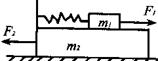 5、如图所示,在不光滑的平面上,质量相等的两个物体A、B间用一轻弹簧相连接,现用一水平拉力F作用在B上,从静止开始经一段时间后,A、B一起做匀加速直线运动,当它们的总动能为Ek时撤去水平力F,最后系统停止运动,从撤去拉力F到系统停止运动的过程中,系统( )