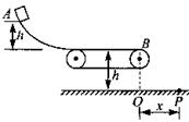 (19分)如图所示,光滑弧形轨道下端与水平传送带吻接,轨道上的A点到传送带的竖直距离和传送带到地面的距离均为h=5m,把一物体放在A点由静止释放,若传送带不动,物体滑上传送带后,从右端B水平飞离,落在地面上的P点,B、P的水平距离OP为x=2m;若传送带顺时针方向转动,传送带速度大小为v=5m/s,则物体落在何处?这两次传送带对物体所做的功之比为多大?
