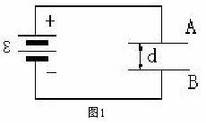 如图1所示,电容量为C的平行板电容器的极板A和B水平放置,相距为d,与电动势为ε、内阻可不计的电源相连。设两板之间只有一个质量为m的导电小球,小球可视为质点。已知:若小球与极板发生碰撞,则碰撞后小球的速度立即变为零,带电状态也立即改变,改变后,小球所带电荷符号与该极板相同,电量为极板电量的α倍(α<<1)。不计带电小球对极板间匀强电场的影响。重力加速度为g。