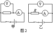 例4.如图2甲、乙所示的两个电路中的电阻R、电流表、电压表和电池都是相同的,电源的内电阻相对于电阻R的大小可以忽略。闭合开关后,甲、乙两电路中电压表和电流表的示数分别为U甲、U乙、I甲、I乙。已知U甲≠U乙、I甲≠I乙,则下列判断中正确的是 ( )