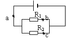 R2,电流表的内阻为RA。将电流表接入电路的a点(即串联于干路中),电流表的示数为I。若将电流表接入电路的b点(即与电阻R1串联),电流表的示数为I1;若将电流表接在电路的c点(即与电阻R2串联), 电流表的示数为I2。则以下判断正确的是 ( )