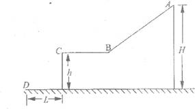 13.(1 4分)如图所示,斜面AB光滑,BC面水平,在A点处有一质量为1kg的物体由静止下滑,经过B点后从C点平抛出去,最后落在地面上的D点处。已知A点距水平地面高度H=10m, BC面距水平地面高度h=5m,c、D间的水平距离L=6m(物体在由斜面进入水平面的过程中无机械能损失,g=10m/s2)。