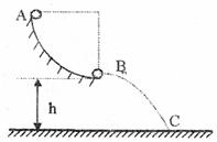 11.如图所示,在竖直平面内有一条1/4圆弧形轨道AB,其半径为1m,B点的切线方向恰好为水平方向.一个质量为2kg的小物体,从轨道顶端A点由静止开始沿轨道下滑,到达轨道末端B点时的速度为4m/s,然后做平抛运动,落到地面上的C点。若轨道距地面的高度h为5m(不计空气阻力,g=10m/s2),求: