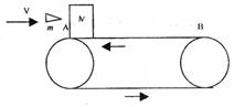 23.如图所示,水平传送带AB长L=10m,质量为M=1kg的小木块随传送带一起以v1=2m/s的速度向左匀速运动(传送带的速度恒定),木块与传送带间的动摩擦因素μ=0.25.当木块运动至最左端A点时,一颗质量m=20g的子弹以v0=300m/s的水平速度向右射入木块并穿出,穿出速度u=50m/s,以后每隔2s就有一颗子弹射向木块,(设子弹射穿木块的时间极短,木块的大小可忽略。)且每次射入点各不相同,g取10m/s2.求: