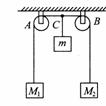 (15分)如图所示,跨过滑轮A、B的细线两端各挂质量为M1、M2的物体,其中点C挂质量为m的物体。且m<M1、m<M2、AB=2L,求: