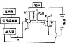 (3)在托盘上未放物体时通常先校准零点,试推想校准零点的方法?校准零点后,将物体m放在托盘上,试推导出物体质量m与P1、P2间电压U之间的函数关系式。