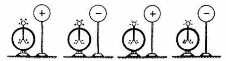 9.使用电的金属球靠近不带电的验电器,验电器的箔片开。下列各图表示验电器上感应电荷的分布情况,正确的是( )