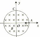 21.(12分)在以坐标原点 O为圆心、半径为 r的圆形区域内,存在磁感应强度大小为 B、方向垂直于纸面向里的匀强磁场,如图所示。 一个不计重力的带电粒子从磁场边界与 x轴的交点 A处以速度 v沿-x方向射入磁场,它恰好从磁场边界与 y轴的交点 C处沿+y方向飞出。