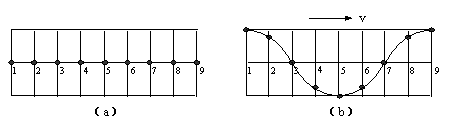 一列横波沿直线向右传播,直线上有间距均为L的9个质点,如图(a)所示。t=0时横波到达质点1,质点1开始向下运动,经过时间Δt第一次出现如图(b)所示的波形。则该波的