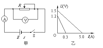 (1)用图甲所示的电路分别测量新旧电池的电动势和内阻,并把测量结果描绘成乙图所示的图像。由图像可知:旧电池的电动势E= V,内阻r= Ω.