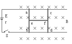 (2)合上电键的瞬间,杆ef对ab、cd水平方向作用力的大小.