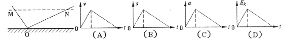 3.如图所示,光滑轨道MO和ON 底端对接且ON=2MO, M 、 N 两点高度相同,小球自 M 点由静止自由滚下,忽略小球经过O 点时的机械能损失,以 v 、s、 a 、Ek分别表示小球的速度、位移、加速度和动能四个物理量的大小.下列图象中能正确反映小球自M点到N点运动过程的是…………………………………………( )