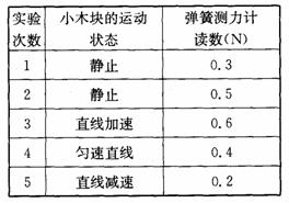 在探究摩擦力的实验中,用弹簧测力计水平拉一放在水平桌面上的小木块,小木块的运动状态和弹簧测力计的读数如下表所示(每次实验时,木块与桌面的接触面相同),则由下表分析可知………………(